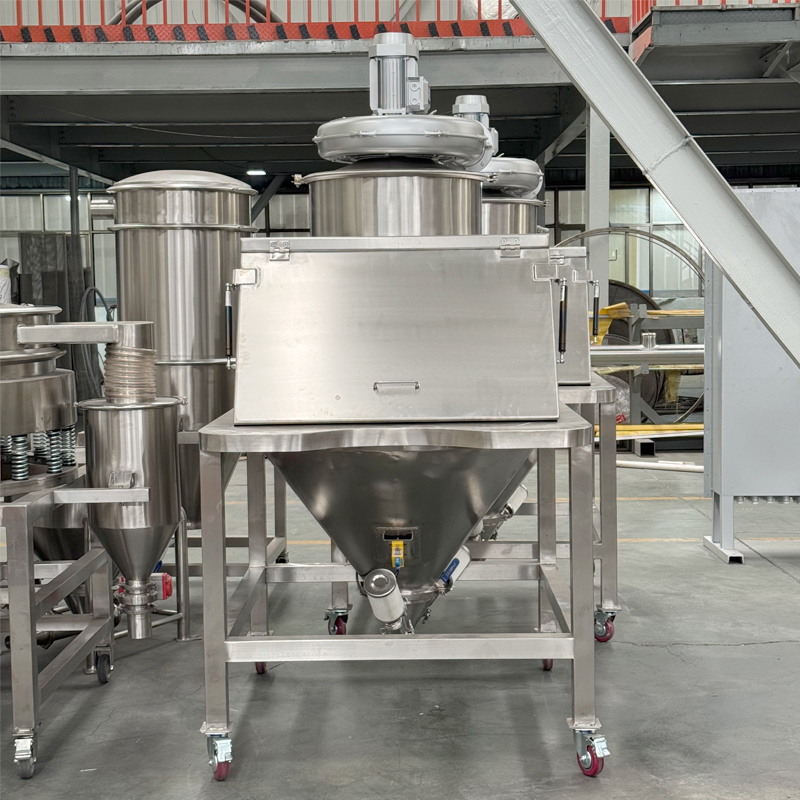 Podstawową zasadą działania jest synergia usunięcia pyłu pod ciśnieniem ujemnym i fizycznej izolacji.tworzenie stabilnego ciśnienia ujemnego w hopperze do podawania, który tłumi latający pył z ukierunkowanym przepływem powietrza i wciąga go do zintegrowanego systemu filtracji, osiągając w ten sposób oddzielenie pyłu od powietrza.To urządzenie może znacząco poprawić otoczenie warsztatuJest szeroko stosowany w takich gałęziach przemysłu, jak żywność i chemikalia, które mają rygorystyczne wymagania dotyczące czystości.